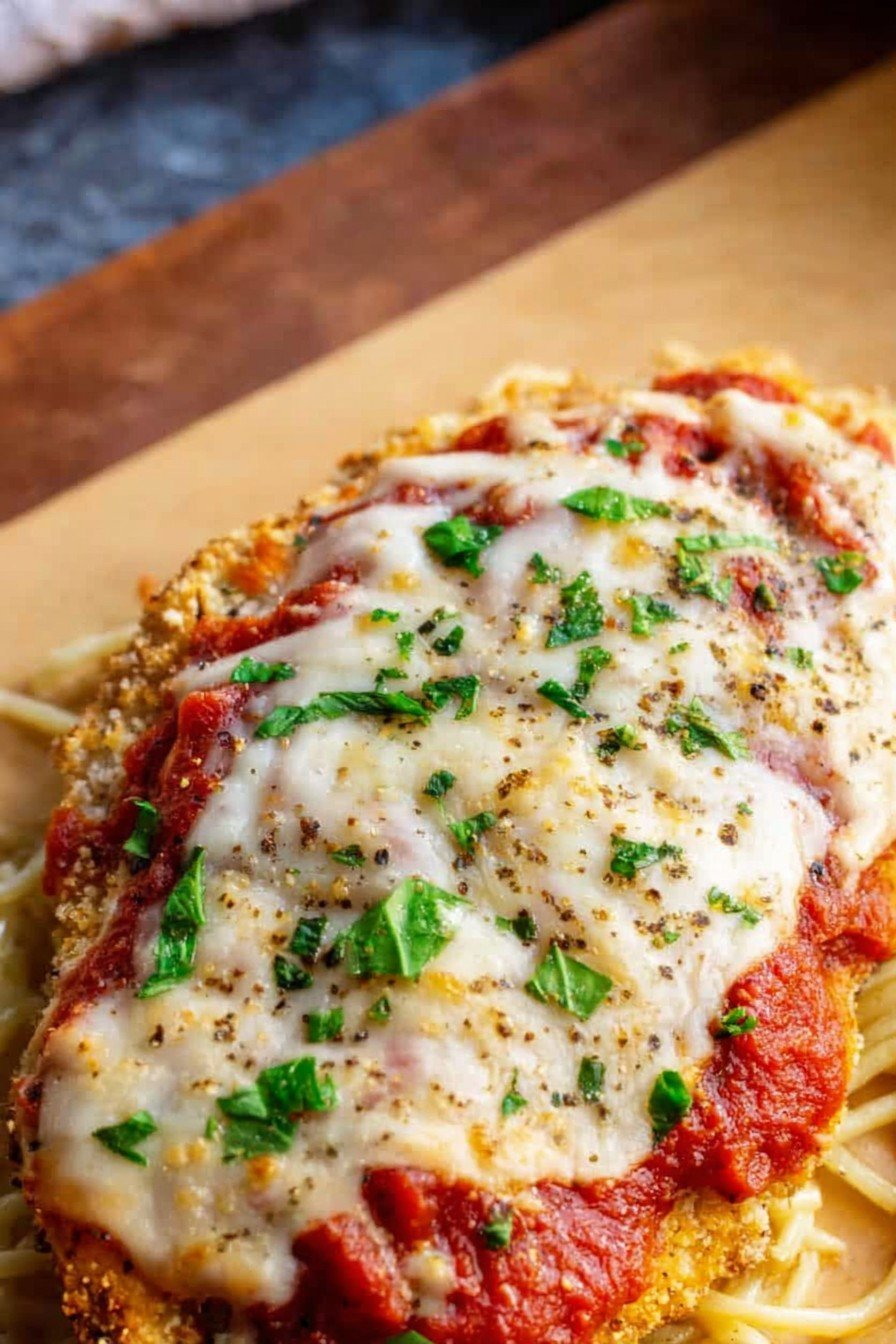 6Serve the chicken Parmesan hot, garnished with fresh basil if desired.