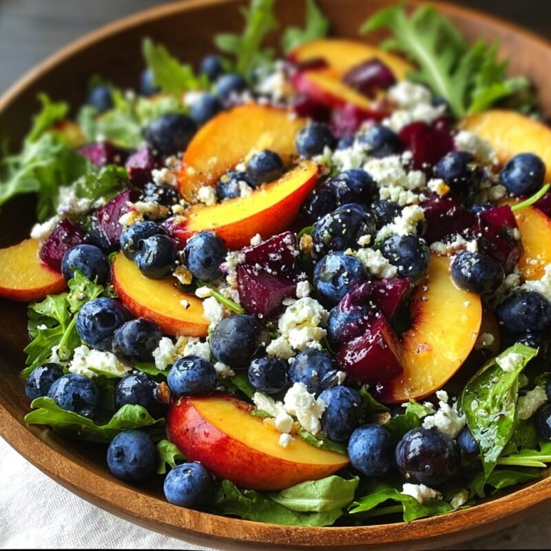 That’s about it. If you try this Blueberry Peach Feta Salad, let me know how it goes—or if you discover a secret ingredient, I’m all ears. Oh, and if you want more salad inspo, check out this roundup for some wild combos (I’ve only tried half of them, but one day…).