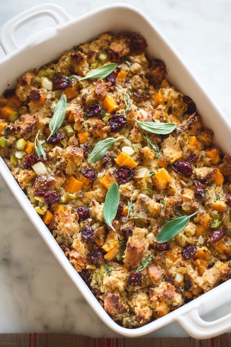 This Butternut Squash, Date & Apple Stuffing is the one dish I manage to burn almost every year—only slightly, but enough that it’s become a bit of a running family gag. My cousin calls it the “well-loved” corner (no one actually avoids it, by the way). I remember the first time I chucked in dates, thinking it would be all fancy and chef-like, but I’d accidentally bought prunes. Not. The. Same. At all! Anyway, these days it’s one of those recipes that feels right for any fall gathering—tho, to be fair, I made it on a rainy March Tuesday once and no one complained; as long as it’s in the oven, the house basically smells like a hug. Honestly that’s the only kind of air freshener I want.