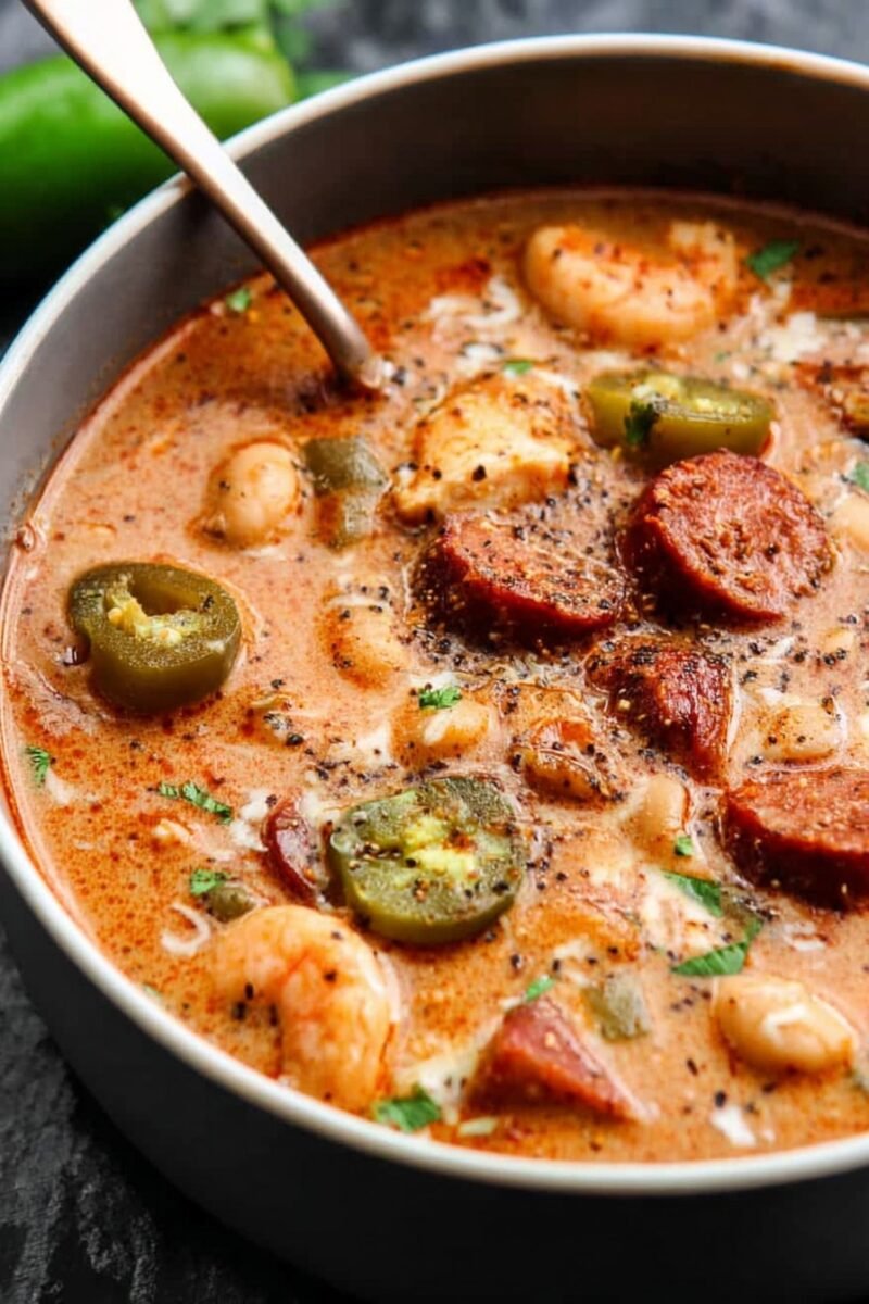 I make this when I’ve completely run out of regular chili energy and the weather feels like it’s whispering, “You deserve something different.” My family goes bananas for it because it’s comforting but has way more personality than the usual white bean chili (Cajun spices, people!). Plus, you get that creamy heat that sneaks up on you—not so much a fire, more of a warm hug from a very enthusiastic cousin. And, not gonna lie, it’s saved me on those “What the heck is for dinner” nights, especially after work when my motivation is mostly gone. (Though, pro tip, don’t try to chop onions when you’re half asleep. Learned that the ouchy way.)