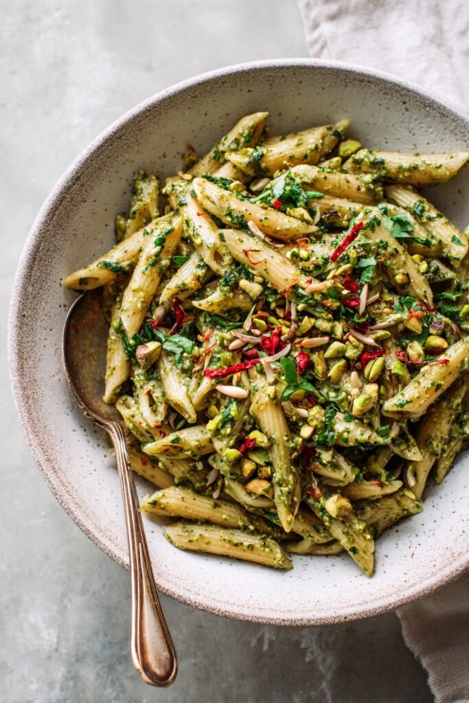 I make this when my brain’s fried but I still want something that tastes like I tried harder than I did. My husband literally requests it whenever he sees pistachios in the house, mostly because he hopes there are leftovers for his lunch (as if that’s ever happened). I reach for it after a day that’s felt a bit longer than it needed to, when the thought of chopping garlic feels courageous. Pretty sure I once made it just because I bought pasta on sale. Also, prepping fewer ingredients means fewer dishes – which I would totally say is intentional organization, but it’s really just me being lazy.