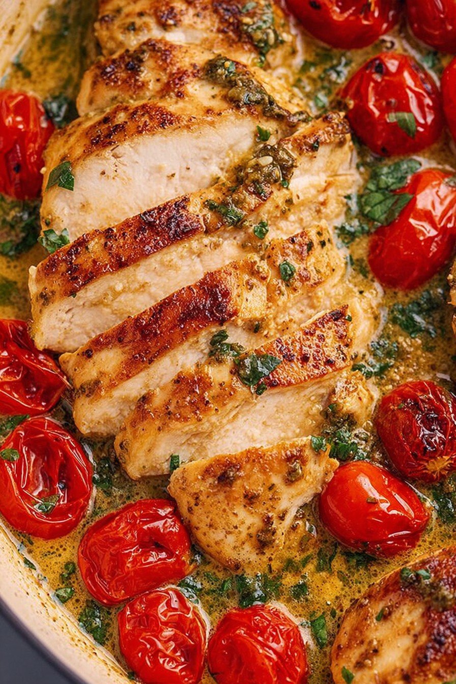 5Return chicken to the skillet, spoon sauce over the top, and add cherry tomatoes if using. Simmer for another 2-3 minutes to heat through.
