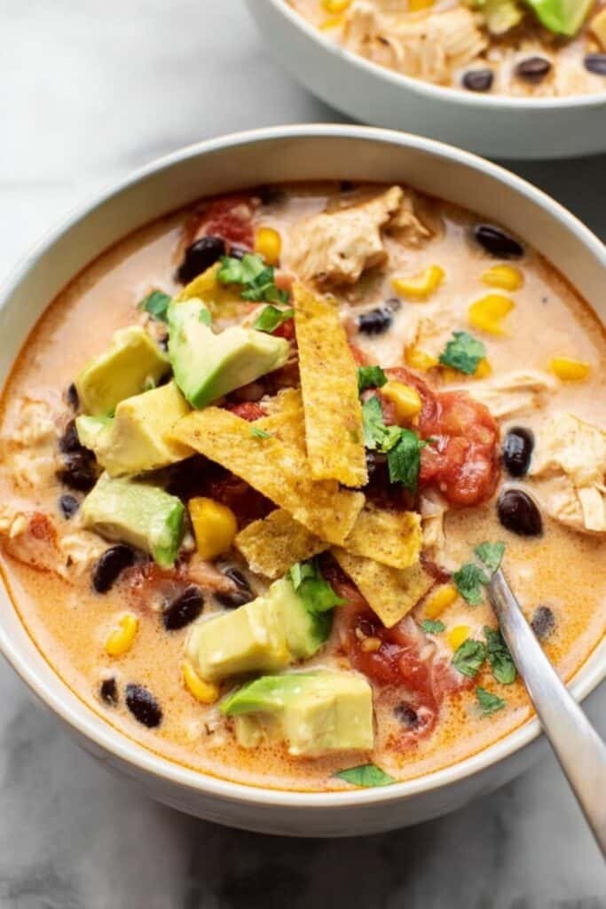 We go full-top-your-own, like a taco bar, but soup form. Crushed tortilla chips (sometimes the bottom bits from bags, always a win), dollop of sour cream, extra cheese and maybe a squeeze of lime. My husband stirs in hot sauce until he’s nearly sweating, but that’s just him. Homemade guacamole and warm corn tortillas on the side, if I’m feeling fancy or it’s the weekend.