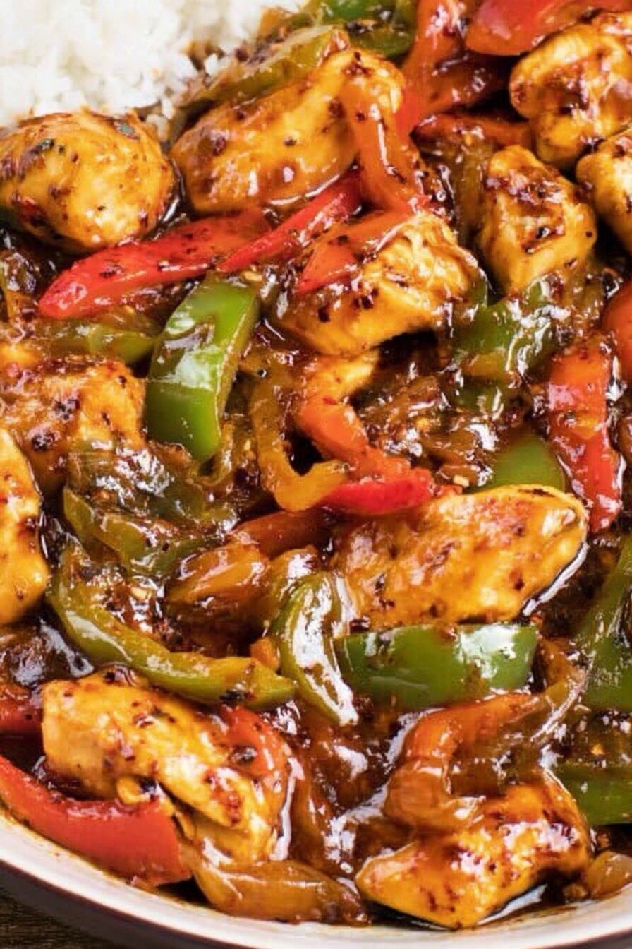 A quick and flavorful stir fry featuring tender chicken tossed with garlic, black pepper, and colorful vegetables. Perfect for a weeknight dinner, this dish brings together delicious savory notes with a subtle hint of spice.