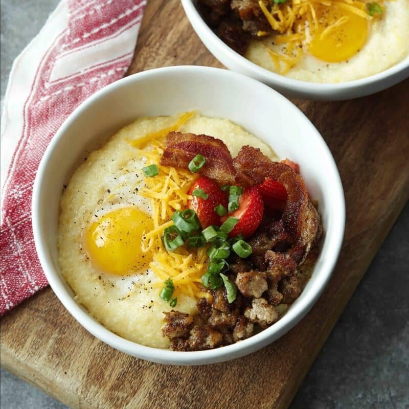 I make this when my morning feels a bit sideways, or when breakfast needs cheering up. My family goes a bit bonkers for it because there are *so* many topping possibilities (and, okay, little fights about who gets more crispy bacon; happens every time). Truthfully? Sometimes I do this bowl just so I have an excuse to sprinkle on hot sauce. I struggled to get eggs and grits timing right at first but honestly, now I just go with the flow — a little chaos in the kitchen never hurt anyone. Plus, it’s forgiving, fills you up, and if you have picky eaters around, they’ll probably find their happy spot too.