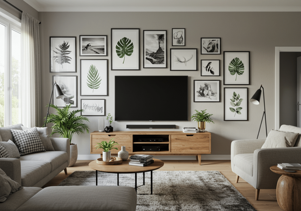 Pro Tip: Use a consistent frame color or style to tie the elements together, ensuring the TV integrates seamlessly.