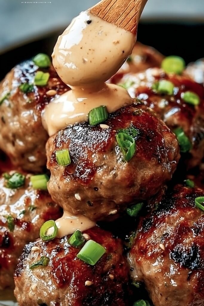 6. Serve It Up Hot: Transfer the sauced meatballs to a serving platter. Garnish with sesame seeds and green onions if you’re feeling fancy. Serve with the spicy mayo dip on the side. And maybe some toothpicks if it’s a party situation.
