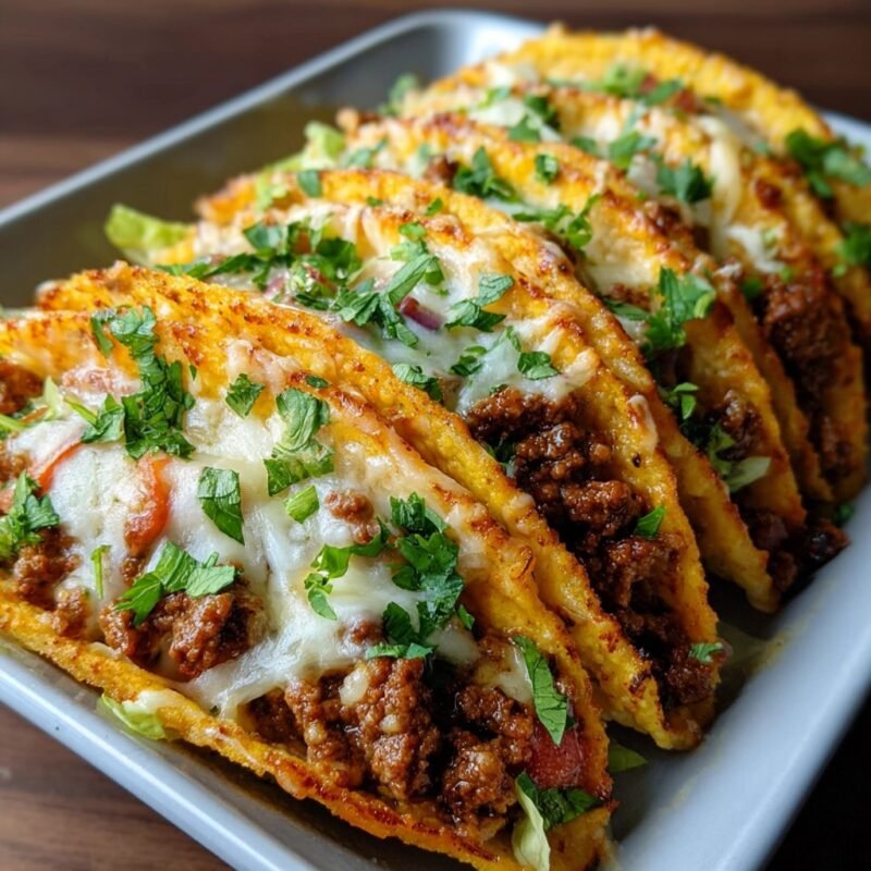 Oven-Baked Cheesy Tacos are a simple and delicious take on classic tacos, made by layering seasoned ground beef, cheese, and taco shells in a casserole dish and baking until golden and melty. Perfect for an easy dinner or a family-friendly meal.