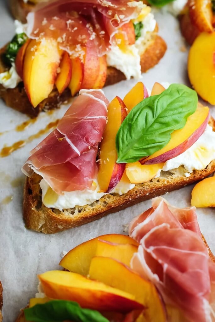 - Layer the peach slices on top; you might need to tuck a few under the prosciutto if you’re feeling all chef-y, but who’s watching?