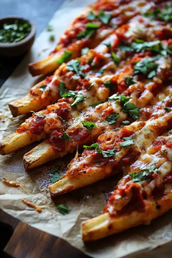 These Pizza Fries combine crispy golden fries with gooey melted cheese, rich marinara sauce, and all your favorite pizza toppings. A fun and delicious snack or appetizer perfect for game nights and gatherings!