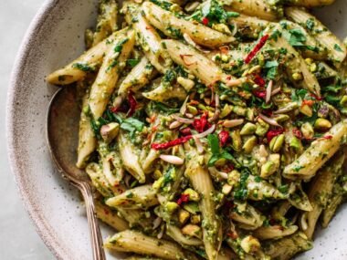 • Creamy 5 Ingredient Pistachio Pesto Pasta