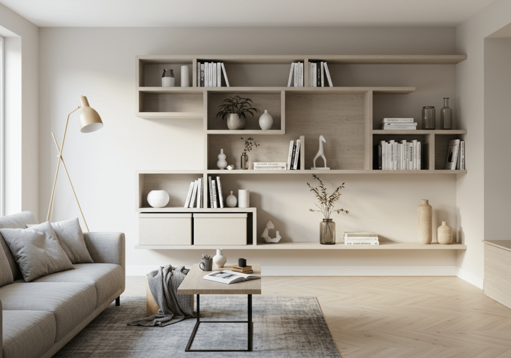 Floating shelves are a fantastic way to achieve a sleek, minimalist aesthetic. These wall-mounted shelves give the illusion of books and decor floating on the wall, creating a modern and airy vibe. Choose shelves in neutral tones or natural wood for versatility.